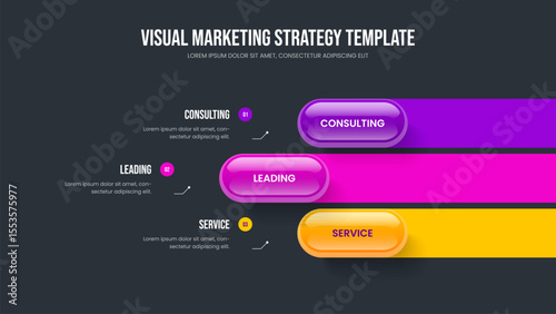 Consulting Introduction Three Option Infographic Frame Layout. Market Plan Slideshow Design Vector Illustration. Business Planning 3 Element Diagram Slide Template.