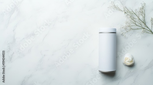 Consumer Trends: Pioneering Innovation and Automation for the Future, Minimalist skincare products on a marble surface, featuring a tube and cream with floral accents.