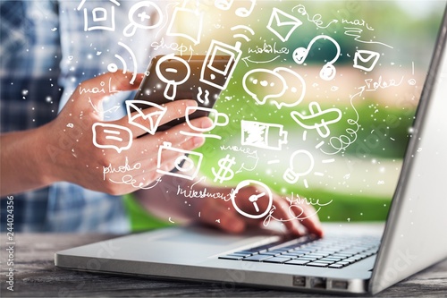 Contact us business laptop mobile information background