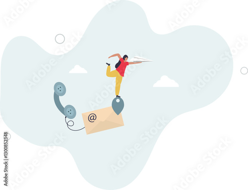 Contact us via email, phone or office location, communicate with customer or client, business information or channel for business contact concept.flat character life .