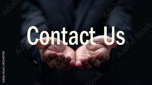 Contact Us word on the hand of a businessman. Text symbol concept. Copy space.
