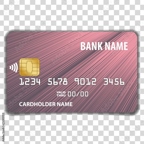 Contactless Credit Card isolated on transparent background. Mock Up Template. Vector illustration.