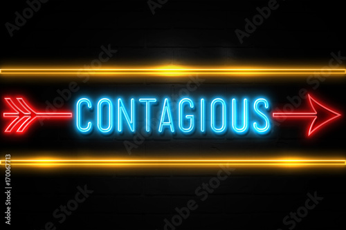 Contagious - fluorescent Neon Sign on brickwall Front view