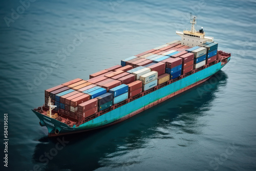 Container cargo freight ship in the ocean, aerial view. Generative AI