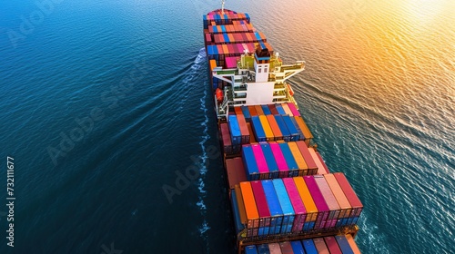 Container Cargo freight ship with working crane bridge for Logistic Import Export background