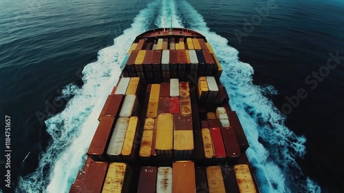 container ship in import export and business logistic.By crane ,Trade Port , Shipping.cargo to harbor.Aerial view.Water transport.International.Shell Marine.Top view.