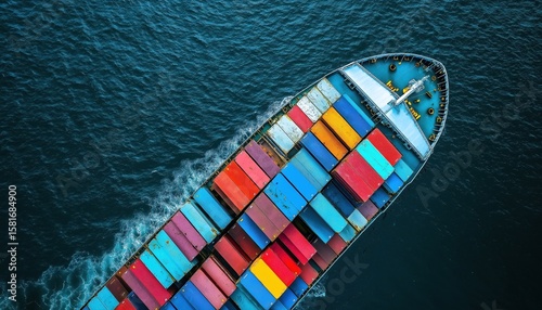 Container Ship on Open Sea Global Supply Chain Disruption, Logistics Trade Crisis.
