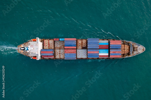 Container ship or cargo shipping business Service logistic import and export freight transportation by container ship in open sea,