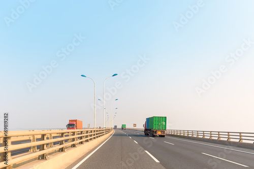 container trucks on cross-sea bridge