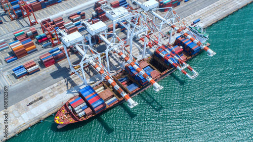 container,container ship in import export and business logistic,By crane,Trade Port , Shipping,cargo to harbor.Aerial view,Water transport,International,Shell Marine,transportation,logistic,trade,port