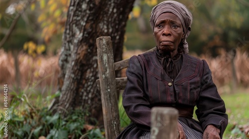 Contemplative African Woman in Traditional Headwrap Outdoors. Black History Month