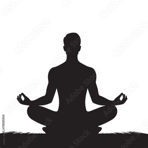 Contemplative Calm: Silhouette Depicting a Person Engaged in Serene Meditation Practice - Meditation Vector - Relaxation Silhouette - Meditation Illustration