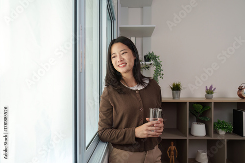 Contemplative Moment: Young Woman Holding Glass by Window at Home