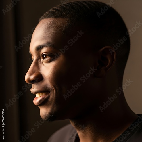 Contemplative Portrait of a Young African American Man in Shadow.