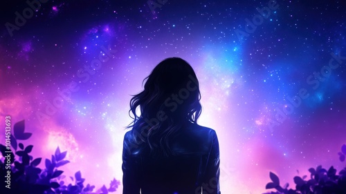 Contemplative silhouette against cosmic colors