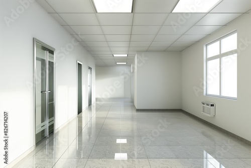 Contemporary Gallery Space with White Wall and Concrete Floor. 3D Render Mockup for Art Exhibitions and Presentations