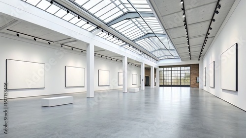 Contemporary Gallery with Skylights and Multiple Mounted Canvases