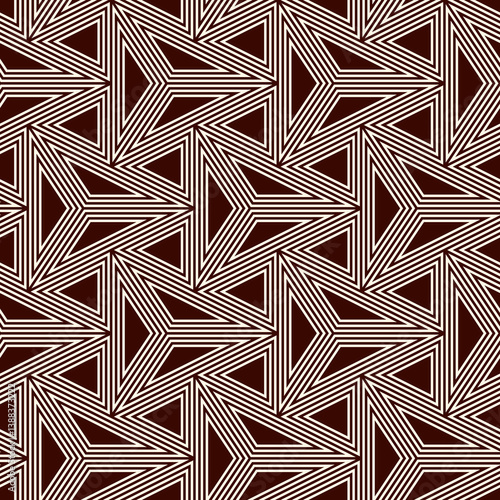 Contemporary geometric pattern. Repeated triangles, lines. Art deco style ornament. Modern geo abstract background. Linear seamless surface design. Grid digital paper, textile print. Vector wallpaper