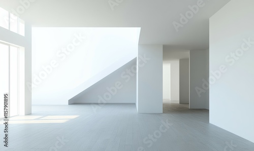Contemporary home interior with white walls in the background. 3D rendering, 3D illustration.