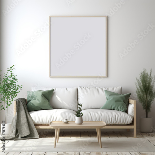 Contemporary Living Room Mockup: Blank Poster Frame on Stylish Sofa