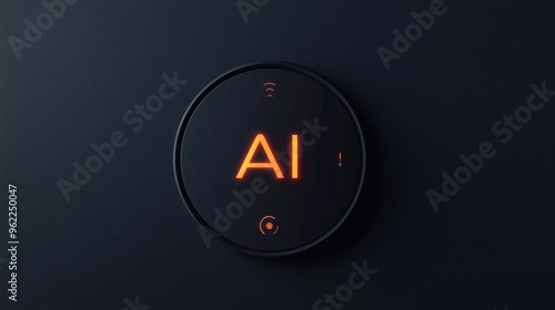 Contemporary logo design with "AI" in a bold, cutting-edge font, highlighted by tech symbols and a sleek color palette