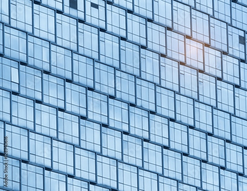 Contemporary office building blue glass wall detail