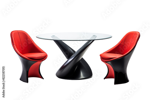 Contemporary Red and black chairs with glass table Isolated on transparent background, png, cut out.