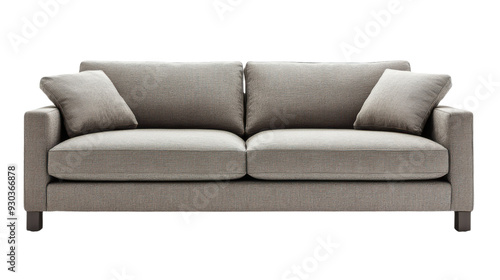 Contemporary Sofa with Clean Lines and Matching Cushions isolated on white background, PNG file, graphic resources