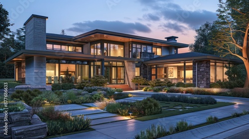 Contemporary suburban home with a state-of-the-art air purification system and green building materials for enhanced indoor air quality