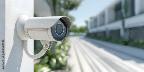 Contemporary surveillance camera monitoring residential premises. Concept Security, Surveillance, Home Safety, Monitoring, Residential Security