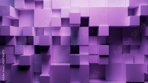 Contemporary Tech Background with Perfectly Constructed Multisized Blocks. Purple, 3D Render.