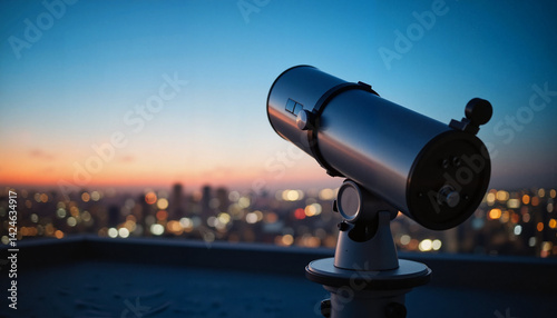 Contemporary telescope on rooftop at dusk, exploring the cosmos