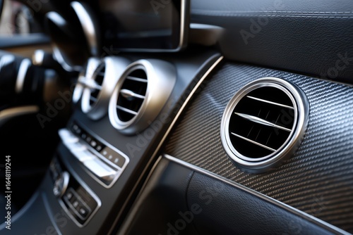 Contemporary vehicle cabin close up featuring metal and plastic elements Interior feature