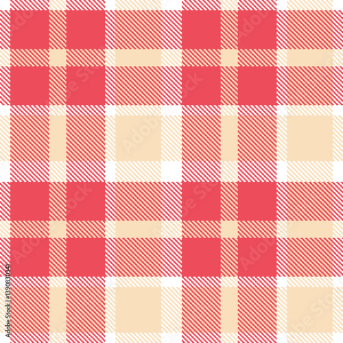 Contemporary Vibrant white & Neon coral pink Seamless Tartan Fabric Design