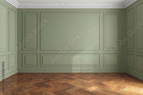 Contemporary vintage-style empty room featuring wooden floors and paneled walls, designed for photo mock-up.