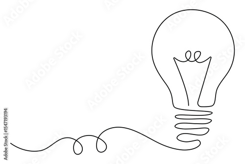 Continuous editable line drawing of light bulb icon in minimal vector style