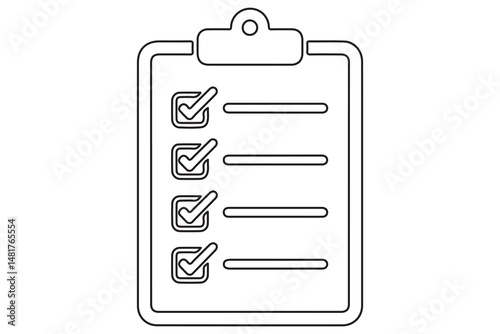 Continuous line art drawing of checklist clipboard icon vector illustration