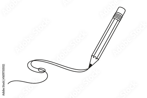 Continuous line art of pen tool vector, writing instrument with editable stroke for minimalist design