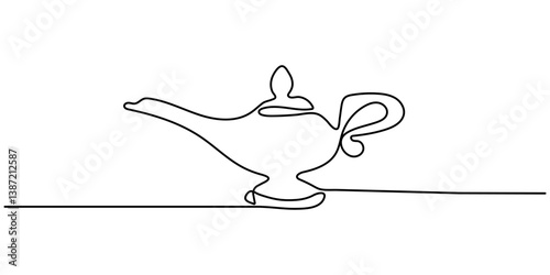 Continuous line design of aladdin magic teapot. Decorative elements drawn on a white background. Drawing of set Magic of minimalist concept.