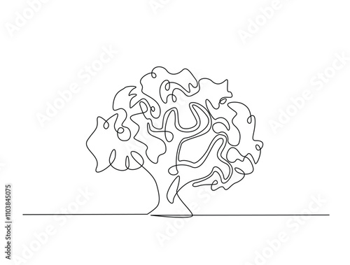Continuous line drawing art of nature big tree. Tree in single line draw with editable stroke.