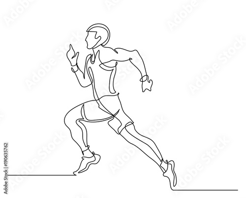 Continuous line drawing. Illustration shows a athlete. Running man. Sport. Athletics. Vector illustration