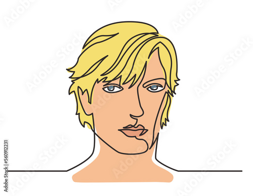 continuous line drawing long haired man portrait 3 colored - PNG image with transparent background