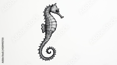 Continuous Line Drawing of a Seahorse with Curled Tail