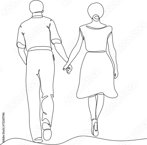 continuous line drawing of a young couple walking together