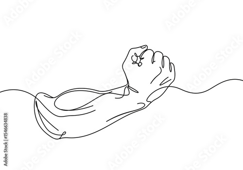 Continuous line drawing of an arm with a clenched fist isolated on a white background minimalist art