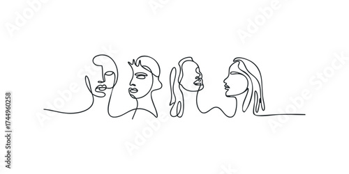 Continuous Line Drawing of Four Diverse Faces in Profile