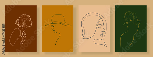 Continuous line, drawing of set faces and hairstyle, fashion concept, woman beauty minimalist, vector illustration