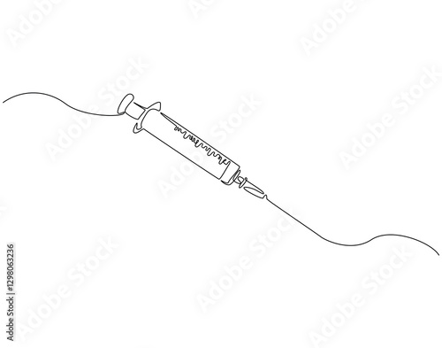 Continuous line drawing of syringe medical equipment. Single line illustration of medical syringe. Medical health concept. Editable outline