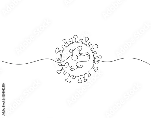 Continuous line drawing of virus. Single line illustration of corona virus. Corona virus, bacteria concept. Editable outline