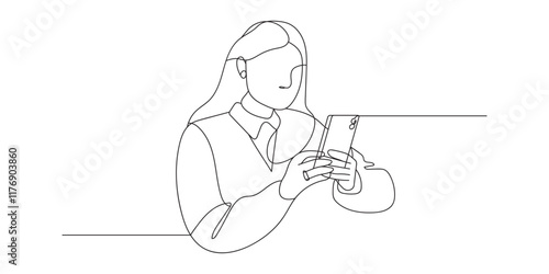 Continuous line drawing of woman hold the mobile phone reading or receiving a message. Hand drawn single line vector illustration